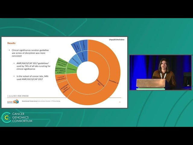 This 11-minute conference talk from the Cancer Genomics Consortium (CGC) 2024 Annual Meeting explores somatic genomic testing and variant curation practices in Australian and New Zealand diagnostic testing laboratories. Presented by Grace Pendlebury, learn about the current methodologies, challenges, and best practices employed by diagnostic laboratories in Australia and New Zealand for cancer genomic testing. Gain insights into how these laboratories identify and interpret genomic alterations to ensure accurate cancer diagnosis and appropriate therapy selection. The Cancer Genomics Consortium represents clinical cytogeneticists, molecular geneticists, and molecular pathologists dedicated to education and promoting best practices in clinical cancer genomics, with the vision that all cancer patients receive accurate genomic diagnoses to guide their treatment.