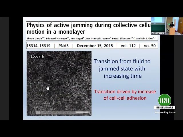 Explore a detailed seminar presentation by Professor Chandan Dasgupta from the Indian Institute of Science examining the effects of activity on glassy dynamics and jamming in dense persistent active matter systems. Delve into the theoretical understanding of non-equilibrium phenomena in biological systems like bacterial cytoplasm, cytoskeleton-motor complexes, and epithelial cell sheets through molecular dynamics and Brownian dynamics simulations. Learn how active forces and persistence time influence glass transition, with short persistence times showing behavior similar to typical glass transitions while reducing transition temperature and kinetic fragility. Discover the unique characteristics of systems with large persistence times, including intermittency patterns and plastic yielding, and examine the properties of homogeneous liquid states with infinite persistence time. Understand the three-stage relaxation process of jamming, the relationship between system size and correlation length, and how properties of jammed states with small active forces differ from passive jammed systems. The presentation, part of the New Statistical Physics in Living Matter series, provides comprehensive insights into the complex dynamics of active matter systems.