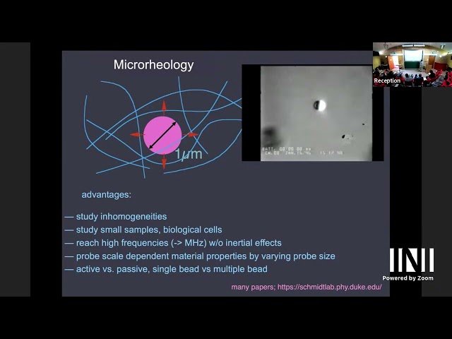 Watch a 71-minute seminar presentation by Professor Christoph Schmidt from Duke University exploring the fascinating world of slender filament microrheology and its applications in characterizing both equilibrium and non-equilibrium materials. Delve into advanced statistical physics concepts as they relate to living matter, with a specific focus on non-equilibrium states under adaptive control. Learn how shape fluctuations can be utilized as analytical tools in understanding material properties at the microscopic level. The lecture, delivered at the INI Seminar Room 2, offers valuable insights into the intersection of physics and biological systems, making complex concepts accessible through practical applications and experimental demonstrations.