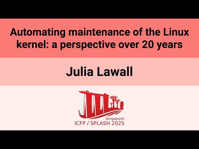 Explore the evolution of automated Linux kernel maintenance through a comprehensive conference presentation examining two decades of development in large-scale software transformation tools. Learn about Coccinelle, a specialized tool designed for automating C code transformations in the Linux kernel environment, and discover how it has become an integral part of kernel developers' workflows, contributing to thousands of kernel commits since its inception in 2004. Understand the challenges of maintaining a 27+ million line codebase that spans over 30 years of development and continues to evolve with new features, performance improvements, and security enhancements. Examine the limitations of pattern-based transformation approaches and discover complementary strategies including kernel execution tracing and formal verification methods that address software issues beyond common code patterns. Gain insights into the practical applications of automated maintenance tools in one of the world's most widely deployed software systems, from smartphones to supercomputers, and understand how these approaches contribute to improving performance, understandability, safety, and security in long-lived, large-scale software projects.