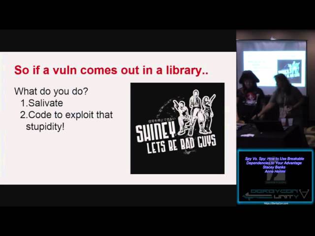 Explore how to leverage breakable dependencies to your advantage in this insightful 20-minute conference talk from Derbycon 2015. Delve into the intricacies of cybersecurity as speakers Stacey Banks and Anne Henmi share their expertise on the topic of "Spy Vs Spy" in the digital realm. Gain valuable knowledge on identifying and exploiting vulnerabilities in software dependencies, and learn strategies to enhance your offensive and defensive security practices.