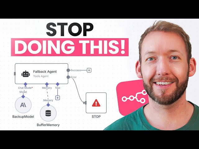 Learn to build robust AI agents in n8n using a comprehensive 3-layer framework designed to prevent failures and handle errors gracefully. Discover preventative measures to avoid common pitfalls, implement corrective measures that automatically fix issues when they occur, and establish fallback mechanisms that ensure your workflows continue functioning even when primary systems fail. Master monitoring and error notification systems to track agent performance and receive alerts when problems arise. Explore practical implementation strategies for each layer of the framework, with step-by-step guidance on applying these methodologies within the n8n automation platform to create reliable, production-ready AI agents that won't break under real-world conditions.