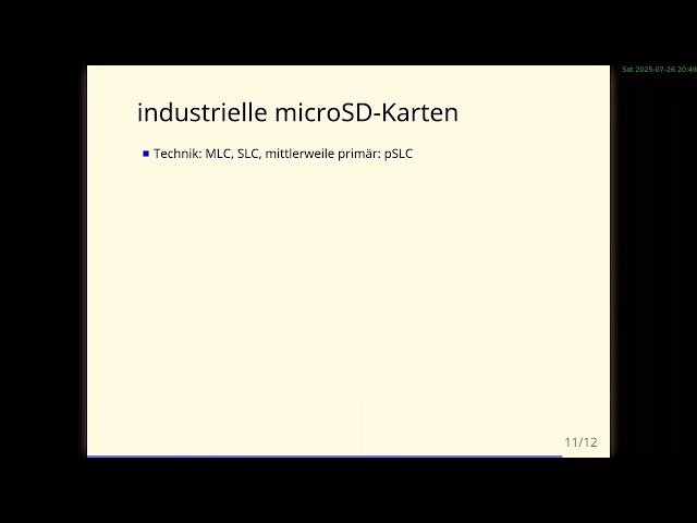 Erfahren Sie in diesem 26-minütigen Konferenzvortrag, warum Standard-microSD-Karten für Raspberry Pis und andere Anwendungen ungeeignet sind, bei denen Zuverlässigkeit und Lebensdauer entscheidend sind. Verstehen Sie die grundlegenden Probleme von Standard-microSD-Karten und ähnlichen Flash-Speichermedien wie USB-Sticks, die primär für kostengünstigen, kompakten und kurzfristigen Speicher in Kameras oder Smartphones entwickelt wurden, nicht für langfristige, zuverlässige Anwendungen. Entdecken Sie praktische Lösungsansätze für embedded-PCs und Raspberry Pi-Projekte, wo Standard-microSD-Karten oft vorzeitig ausfallen. Lernen Sie, welche speziellen microSD-Karten sich besser für industrielle und langfristige Anwendungen eignen und wie Sie deren Lebensdauer effektiv überwachen können. Profitieren Sie von den Erfahrungen des Referenten Roland Freikamp, einem Ingenieur und Unternehmer, der über 2000 Raspberry Pis mit microSD-Karten bei Kunden betreibt und SMART-ähnliche Überwachungsmethoden für Flash-Speicher vorstellt.