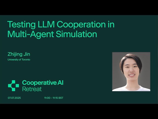 Explore how large language models cooperate in multi-agent environments through this 15-minute conference talk delivered at the 2025 Cooperative AI Summer Retreat. Learn about testing methodologies and simulation frameworks designed to evaluate cooperative behaviors between multiple LLM agents. Discover research insights into causal reasoning with LLMs and AI safety considerations when deploying multiple language models in collaborative scenarios. Gain understanding of the challenges and opportunities in developing cooperative artificial intelligence systems, with particular focus on how LLMs interact, negotiate, and work together in simulated environments. Examine the implications for AI safety and the development of more robust multi-agent systems that can effectively collaborate while maintaining alignment with human values and objectives.