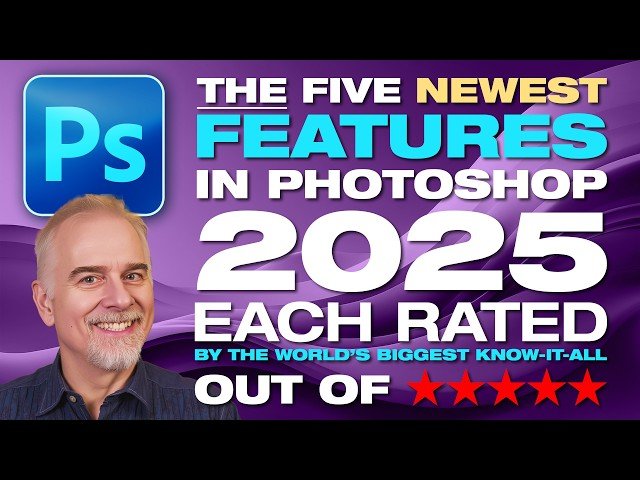 Explore five additional new features from Photoshop 2025's Summer release in this 19-minute video tutorial that provides detailed analysis and star ratings for each feature. Learn about the latest tools and enhancements while getting honest assessments of their practical value and effectiveness. Discover which new capabilities are worth incorporating into your workflow as the instructor evaluates each feature's strengths and limitations with a five-star rating system. Gain insights into the most recent Photoshop updates and make informed decisions about which new tools will best serve your creative projects.