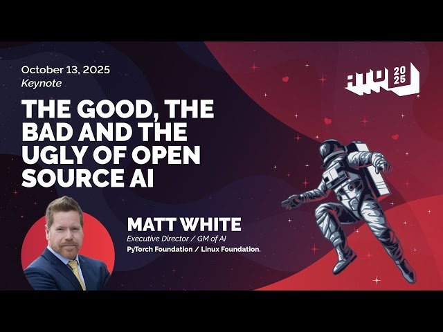 Explore the complex landscape of open source artificial intelligence in this 13-minute keynote presentation delivered at All Things Open. Discover how open source is fundamentally shaping AI's future by driving breakthrough innovations and transforming entire industry dynamics. Learn about the positive aspects of open source AI, including its role in accelerating innovation and democratizing access to advanced technologies. Examine the challenges facing the open source AI ecosystem, such as fragmentation issues, sustainability concerns, and the pressures of global competition. Gain insights from Matt White, General Manager of AI at the Linux Foundation and Executive Director of the PyTorch Foundation, as he analyzes how open collaboration is redefining both technology development and industry trends in the current AI era. Understand the multifaceted impact of open source methodologies on artificial intelligence development and their implications for the future of technology.