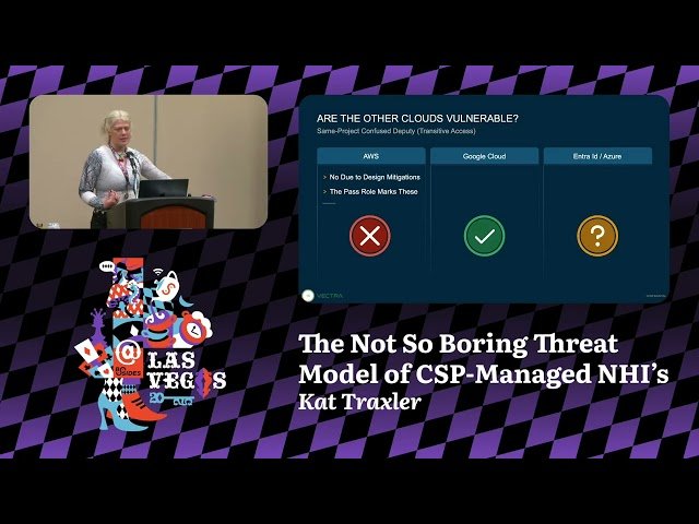 Explore the security risks and vulnerabilities associated with Cloud Service Provider (CSP)-managed Non-Human Identities (NHIs) in this 24-minute conference talk from BSidesLV. Dive deep into the specific threats posed by NHIs across major cloud providers, examining how each provider's unique implementation creates distinct security challenges. Learn about exploits that are specific to different CSP environments and understand how these vulnerabilities can be leveraged by attackers. Build a comprehensive threat model that identifies critical shortcomings in current NHI management practices while discovering practical mitigation strategies to strengthen your cloud security posture. Gain insights into the often-overlooked security implications of automated identities and service accounts that operate without human oversight in cloud environments.