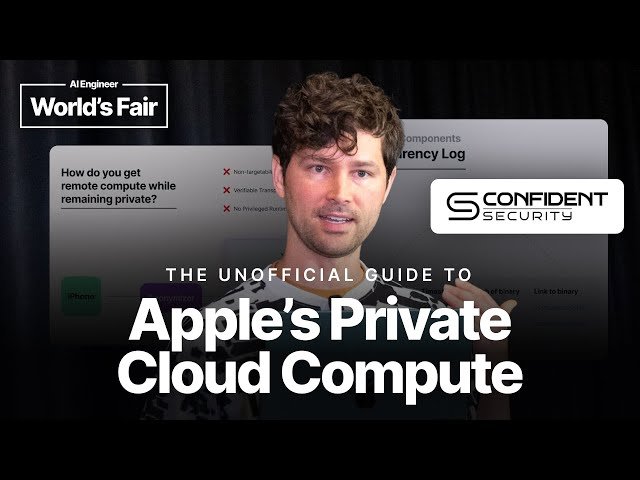Explore Apple's groundbreaking Private Cloud Compute technology in this 21-minute conference talk that examines how Apple achieved the same level of privacy and security found on local devices but deployed on remote servers. Discover the paradigm shift in confidential computing that Private Cloud Compute represents and learn about the core technological advancements that enabled its mainstream adoption. Delve into the novel architecture that allows developers to run sensitive, multi-tenant workloads with cryptographically-provable privacy guarantees at scale while maintaining reasonable costs. Gain insights into leveraging this technology for data and AI applications where privacy and security are critical requirements. The presentation, delivered by technology executive and AI startup CEO Jonathan Mortensen at the AI Engineer World's Fair in San Francisco, provides practical understanding of how this revolutionary approach to cloud computing can transform how sensitive workloads are processed in untrusted environments.
