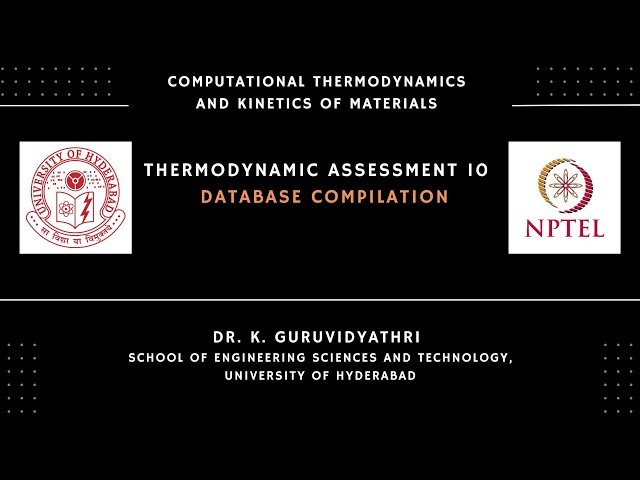 Learn how to compile thermodynamic databases through this 17-minute lecture that explores the practical applications of thermodynamic assessment outputs and their role in materials science research. Discover the fundamentals of assessment and extrapolation techniques, understand how subsystems function within larger thermodynamic frameworks, and master the principles of database compilation. Examine isostructural phases and their significance in thermodynamic modeling, while addressing critical compatibility issues that arise during database development. Explore unary compatibility challenges and learn to resolve models compatibility problems that can affect database accuracy. Investigate the incorporation of new end members into existing databases and understand the complexities involved in extrapolation processes, including common issues and their solutions.