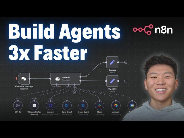 Learn to accelerate AI agent development in n8n by 3x using the powerful $fromAI function for dynamic response handling and seamless tool integration. Master the technique of converting nodes into tools, starting with email sending capabilities and progressing through calendar event creation and HTTP request implementations. Discover how to visualize the $fromAI workflow process and understand how this function eliminates hours of troubleshooting while making tool connections effortless. Follow along with a step-by-step tutorial building an ultimate assistant that demonstrates practical applications of each concept, from basic node configuration to advanced automation workflows that streamline your AI agent development process.