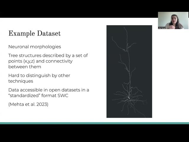 This 13-minute talk by Lida Kanari from the Applied Algebraic Topology Network introduces the Topological Morphology Descriptor (TMD), a novel method for analyzing branching structures in biological systems, particularly neuronal trees. Learn how Topological Data Analysis (TDA) can encode the spatial structure of any tree as a persistence barcode, creating a unique topological signature. Discover how TMD differs from traditional morphometrics by coupling branch topology with spatial dimensions through tracking topological evolution in 3D space. The presentation includes references to multiple research papers and the TMD software repository for those interested in exploring this innovative approach to neuronal morphology analysis further.