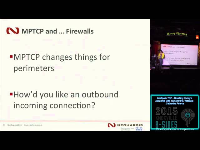 Explore the intricacies of Multipath TCP in this 49-minute conference talk from BSides Knoxville 2015. Delve into the technical introduction, understanding its implications and the concept of cross-path traffic fragmentation. Examine the practicality of this protocol through demonstrations, network flows, and the intriguing 'Spiderweb' concept. Learn about scanning techniques, transparent proxies, and future possibilities. Gain insights into Multipath UDP, compare Multipath TCP with traditional TCP, and discover the potential of frequency hopping. This comprehensive presentation by Catherine Pearce challenges conventional network protocols and offers a glimpse into the future of network communication.
