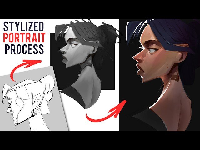 Learn to transform photo references into stylized character art through this 26-minute tutorial by Ben Eblen. Master the process of converting realistic images into stylized designs using fundamental techniques including basic shapes, grayscale values, and digital tools such as clipping masks and layer modes. Discover how to approach the creative process by switching between 2D and 3D thinking while building believable lighting, color, and form. Focus on developing strong structural foundations, maintaining simplicity in design, and creating compelling stylized artwork. Follow along as the instructor demonstrates his complete workflow from initial sketch through value studies, color application, and final refinement stages, emphasizing the importance of structure and stylized design principles throughout the creative process.