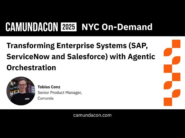 Explore how agentic orchestration and composable architecture can transform legacy enterprise systems into future-proof frameworks in this 30-minute conference talk from CamundaCon 2025 NYC. Learn to overcome common enterprise challenges including overly customized and poor-performing legacy software, AI disruptions, the upcoming SAP ECC End of Life, and demands for modern user experiences. Discover practical solutions through real-world customer examples demonstrating Camunda integrations with SAP, ServiceNow, and Salesforce. Understand how agentic orchestration and automation deliver tangible benefits for leading enterprise systems, enabling organizations to slash time-to-value from months to days while boosting operational efficiency and elevating customer experiences.