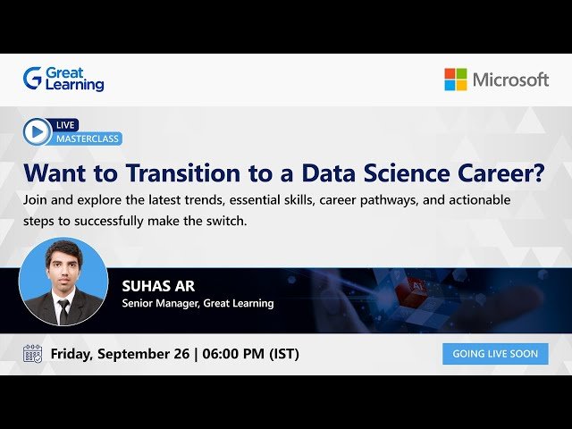 Discover how to successfully transition into a data science career from any professional background in this comprehensive webinar. Learn about the transformative impact of data science and AI across industries including IT, finance, and marketing, while exploring the abundant opportunities available in this rapidly growing field. Master the essential skills and qualifications needed to break into data science, from foundational technical competencies to advanced specializations. Explore various career pathways within the data science ecosystem, ranging from entry-level Data Analyst positions to advanced AI/ML Engineer roles. Gain insights into the latest trends shaping the data science and artificial intelligence landscape, and understand how these developments create new opportunities for career changers. Receive practical guidance on navigating the transition process, including strategies for skill development, portfolio building, and positioning yourself competitively in the job market regardless of your current industry background.