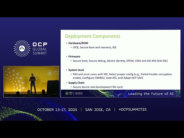 Explore the critical security challenges and requirements for implementing PCIe 6 switch deployments in this 16-minute conference talk from the Open Compute Project. Learn how to maintain end-to-end security as the industry transitions from PCIe 5 to PCIe 6, requiring coordinated approaches across devices, switches, and system architectures. Discover the essential alignment needed for end-to-end security and Confidential Compute scenarios in secure PCIe 6 deployments. Examine device-level security features including secure boot and attestation, while understanding system-wide trust boundaries and policy enforcement mechanisms. Understand the unique challenges introduced by PCIe 6's higher speeds and PAM4 signaling, which impact signal integrity, side-channel exposure, and authentication mechanisms. Gain valuable insights into the hardware and firmware dependencies that must be carefully coordinated to build secure and scalable PCIe 6 infrastructure capable of operating at 64 GT/s speeds.