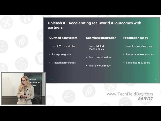 Explore HPE's "Unleash AI" initiative and its partnership with Kamiwaza in this 46-minute conference presentation from AI Field Day 7. Learn about HPE's collaborative, outcomes-based approach to making AI practical for enterprise use through their partner ecosystem program launched in early 2024. Discover how HPE curates end-to-end solutions that are pre-validated on HPE infrastructure and easily deployable through channels, focusing on converting AI hype into real-world solutions by working closely with ISVs to create demos, marketing materials, and training resources. Examine the Agentic Smart City AI use case developed in partnership with Kamiwaza and the town of Vail, Colorado, which demonstrates how municipalities can solve operational challenges using AI, including improving ADA Section 508 web compliance through AI agents that identify and remediate accessibility issues while breaking down data silos and enabling interdepartmental collaboration without cloud connectivity requirements. Understand Kamiwaza's agentic AI platform as a full-stack orchestration engine that connects to and processes data across distributed environments using various hardware and AI models, whether on-premises or at the edge, bringing compute to data while abstracting underlying hardware for enhanced performance, scalability, and flexibility. Gain insights into advanced security features like ReBAC (enhanced role and attribute-based access control) and ephemeral sessions, plus learn how enterprises can move beyond token-based AI billing models to fixed-cost, outcome-based deployments that have shown transformational potential in real-world implementations.