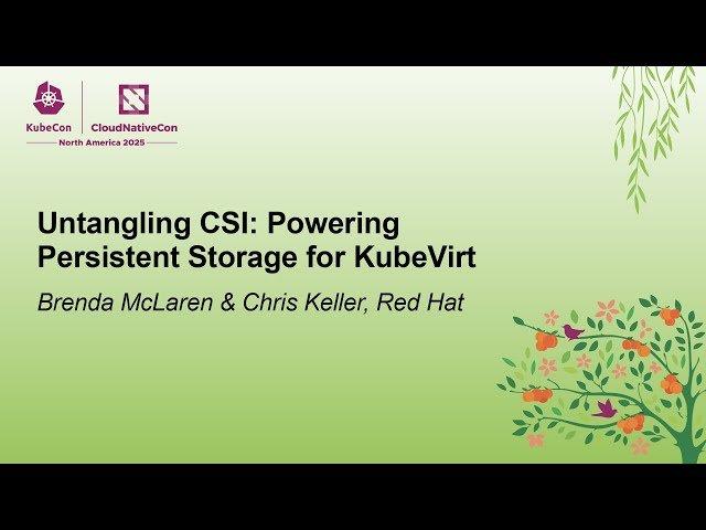 Explore the Container Storage Interface (CSI) standard and learn how to select and implement the right storage solutions for virtualized workloads in Kubernetes environments. Discover the architectures and key capabilities of both traditional external storage platforms and software-defined storage solutions, with specific focus on how these technologies support VM workloads through KubeVirt. Gain insights into essential features to prioritize when building resilient storage backends, understand common implementation pitfalls to avoid, and develop the expertise needed to make informed decisions between legacy storage arrays and modern software-defined storage solutions. Master the complexities of persistent storage provisioning and management in cloud-native environments, enabling you to unlock the full potential of virtualized infrastructure on Kubernetes platforms.