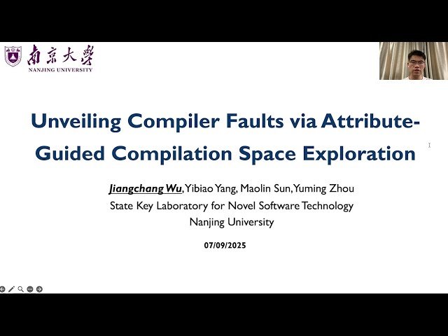 Explore a research presentation from USENIX ATC '25 that introduces ATLAS, an innovative attribute-guided approach for discovering compiler bugs through strategic compilation space exploration. Learn how researchers from Nanjing University developed a method that leverages programming language attributes like __attribute__((always_inline)) to insert targeted directives into test programs, enabling more thorough compiler testing than traditional uniform compilation option approaches. Discover how ATLAS provides flexible control over compilation processes by specifying attributes for individual program elements such as functions and variables, allowing investigation of previously unexplored compiler areas. Examine the experimental results demonstrating ATLAS's superiority over baseline testing techniques in bug detection and code coverage across GCC and LLVM compilers. Understand the practical impact of this research through the discovery of 73 unique compiler bugs, with 58 already confirmed or fixed, highlighting the method's effectiveness in uncovering critical issues in foundational system software infrastructure.