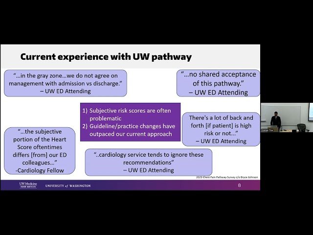 Learn about evolving approaches to chest pain evaluation and management through this one-hour cardiology lecture presented by Dr. Connor Tice, a Cardiology Fellow at the University of Washington. Explore the current University of Washington chest pain pathway and discover why changes to traditional assessment protocols may be necessary in modern clinical practice. Gain insights into evidence-based modifications that could improve patient outcomes, reduce unnecessary testing, and enhance the efficiency of chest pain evaluation in emergency and clinical settings. Understand the rationale behind pathway updates, examine current best practices in chest pain management, and consider how institutional protocols can be optimized to better serve patients presenting with chest pain symptoms.