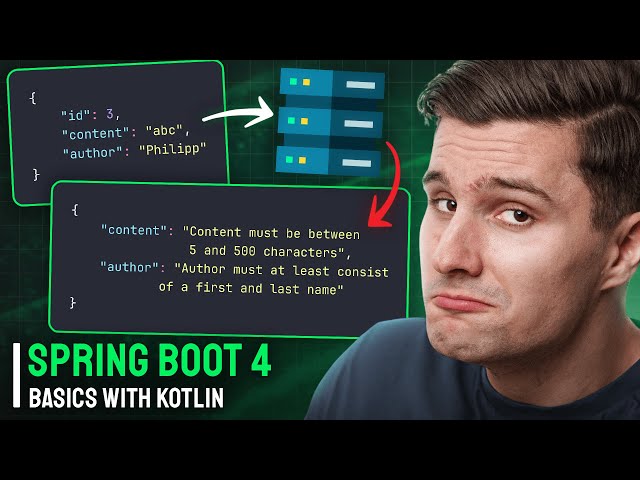 Learn how to validate incoming request bodies using the Spring Validation framework in this 16-minute tutorial focused on Spring Boot development with Kotlin. Discover the essential techniques for implementing request validation to ensure data integrity and proper error handling in your Spring Boot applications. Explore the built-in validation annotations provided by the Spring Validation framework and understand how to apply them to your request models. Master the process of creating custom validation constraints by defining your own annotations, allowing you to implement business-specific validation rules that go beyond the standard validators. Gain practical experience with validation error handling and learn how to provide meaningful feedback to API consumers when validation fails. Understand the integration between Spring Boot's validation mechanisms and Kotlin's language features, including how to leverage Kotlin's null safety and data classes effectively with validation annotations.