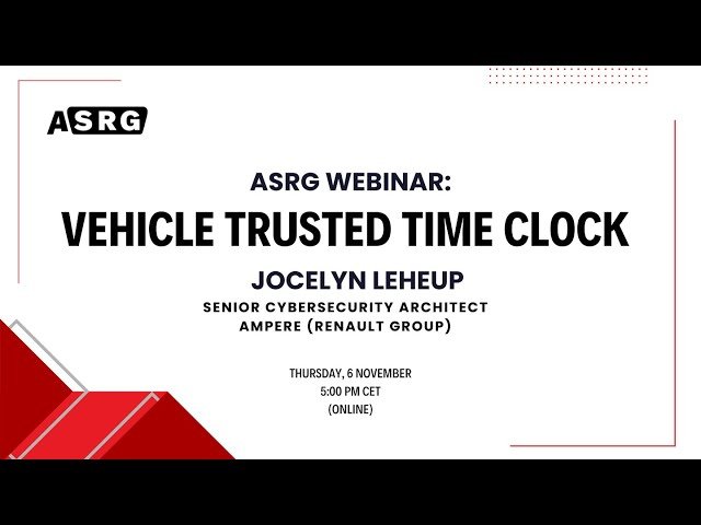 Explore advanced timing synchronization solutions for modern vehicles in this 42-minute webinar that addresses critical cybersecurity challenges in automotive systems. Learn about the fundamental timing requirements for autonomous driving and V2X communication technologies, where precise, trusted, and synchronized timing is essential for safety and optimal functionality. Discover why traditional vehicle clock synchronization methods are vulnerable to compromise through telematics systems and examine two innovative solutions for implementing secure UTC clocks in Software Defined Vehicles (SDVs). Analyze the first approach using Network Time Protocol (NTP) with its Network Time Security (NTS) extension, understanding the compliance challenges with vehicle cybersecurity regulations. Investigate the second solution that employs periodic resynchronization with dual time sources to ensure integrity and resilience against attacks. Compare both approaches to understand why the dual time-source solution offers superior security-complexity tradeoffs and explore future challenges in vehicle timing security. Gain insights from industry expert Jocelyn Leheup, Senior Cybersecurity Architect at Renault Group, who brings over 20 years of experience in embedded systems architecture and serves as System Cybersecurity Lead for the Renault/Ampere SDV platform.