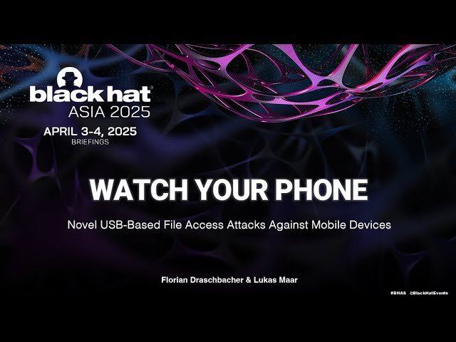 Explore cutting-edge cybersecurity research in this 39-minute Black Hat conference talk that reveals critical vulnerabilities in mobile device USB security mechanisms. Discover how researchers from Graz University of Technology have developed novel attack techniques that bypass both lock screens and user confirmation prompts to gain unauthorized file access on modern iOS and Android devices. Learn about the shortcomings of current USB file access security measures and witness live demonstrations showing how malicious USB chargers can establish data connections while simultaneously injecting input events to bypass security prompts on Samsung devices. Examine sophisticated attacks against locked Android devices that exploit vulnerabilities in both AOSP and vendor-specific implementations, including a demonstration of achieving full read-write file access on locked Google Pixel devices running Android 14 or 15. Gain insights into the technical methodologies behind these USB-based attacks and understand the recommended mitigations to protect against these emerging threats to mobile device security.