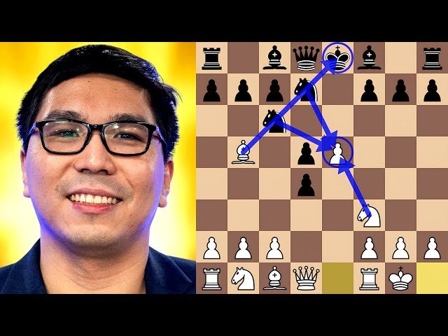 Analyze an instructive chess game between Wesley So and Nodirbek Abdusattorov from the decisive 9th and final round of the 2025 Sinquefield Cup in this 24-minute chess tutorial. Study the Scotch Game opening and Scotch Gambit variation as the position develops into a complex middlegame featuring a minor piece imbalance and competing pawn majorities after 22 moves. Focus on White's dominant knight positioned on the d3 outpost, which provides excellent central control and enables tactical opportunities throughout the game. Observe how this positional advantage allows for an impressive king walk to the queenside, demonstrating advanced endgame technique. Learn from Wesley So's championship-winning performance that secured him the 2025 Sinquefield Cup title, with detailed move-by-move analysis and strategic explanations from a National Master perspective. The complete PGN notation is provided for further study and replay of this decisive tournament game.