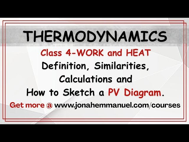 Explore the fundamental concepts of work and heat in thermodynamics through this comprehensive 27-minute tutorial that covers essential principles and practical applications. Learn the precise definitions and meanings of work and heat in thermodynamic systems, while discovering the key similarities between these two important energy transfer mechanisms. Master the derivation of equations for work done by cylinder-piston assemblies on fluids, complete with step-by-step mathematical explanations and solved examples. Develop skills in sketching and interpreting PV (pressure-volume) diagrams to visualize thermodynamic processes and understand how work calculations relate to graphical representations. Practice applying theoretical concepts through worked examples that demonstrate real-world applications of thermodynamic principles, reinforcing your understanding of energy transfer mechanisms in mechanical systems.