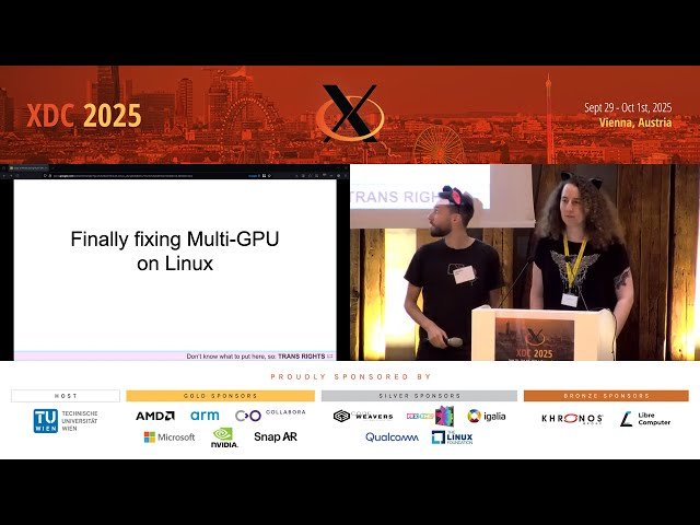 Learn how to solve Linux's long-standing multi-GPU configuration challenges in this conference talk from XDC 2025. Discover the current limitations where compositors ignore additional GPUs and users must rely on obscure environment variables and config files for application configuration. Explore a proposed new service solution featuring dynamic configuration and policies similar to those found in other operating systems, along with accompanying changes to desktop environments and compositors that will enable deterministic and user-visible GPU selection for Linux systems.