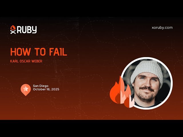 Learn from an expert's personal failures in this 44-minute conference talk that explores the art of failing, avoiding failure, and recovering when failure occurs. Discover common failure patterns in freelance work and other effort-driven endeavors including agencies, studios, and individual contributor roles through candid lessons from the speaker's own mistakes. Gain insights into how failure isn't the end but rather a learning opportunity, with practical advice on recognizing failure methods to help you avoid them while encouraging you to make your own unique mistakes. Explore the speaker's statement of intent regarding a new Ruby Foundation aimed at diversifying and strengthening the Ruby ecosystem, along with direct lessons on organizing and strengthening community efforts. Recorded at XO Ruby San Diego 2025, this grassroots conference presentation offers authentic, real-world wisdom delivered with the volunteer-run spirit of the Ruby community.